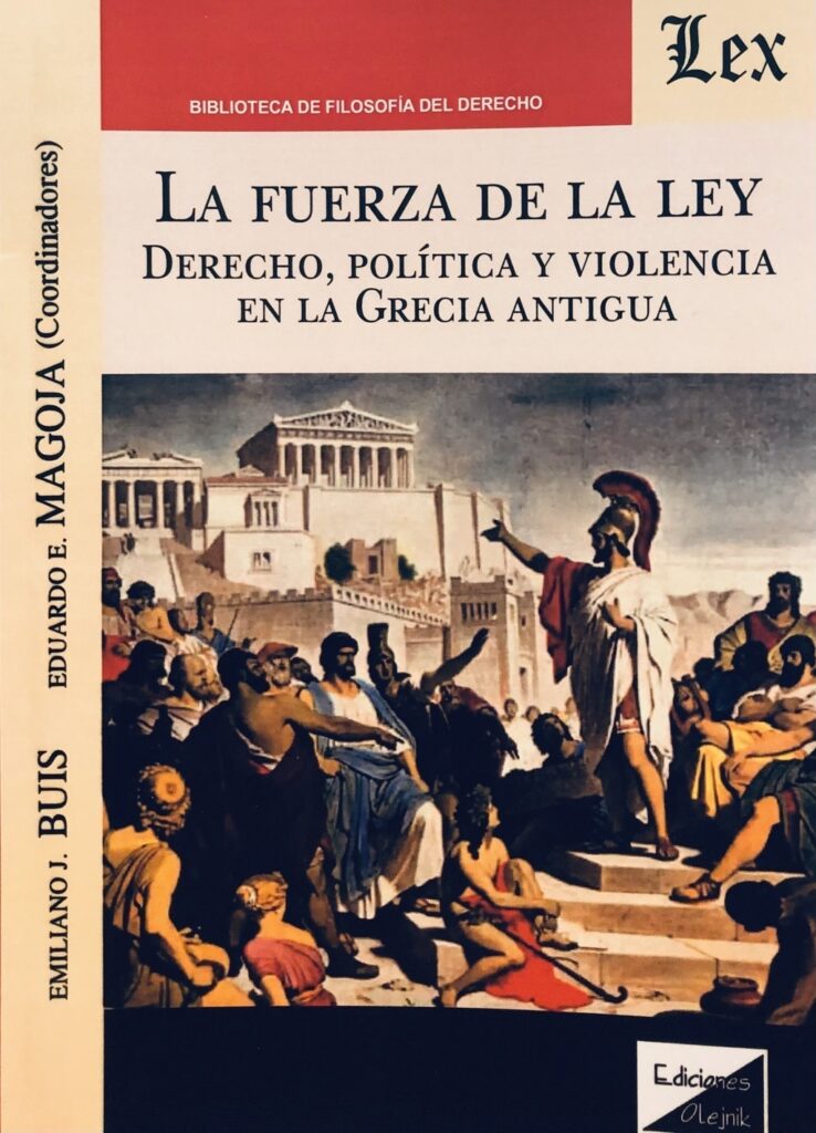 Buis, E. J. & E. E. Magoja (coord.) La fuerza de la ley. Derecho, política y violencia en la Grecia antigua, Buenos Aires/Santiago: Ediciones Olejnik, 2024 [ISBN 978-956-407-506-8]. Disponible aquí.
